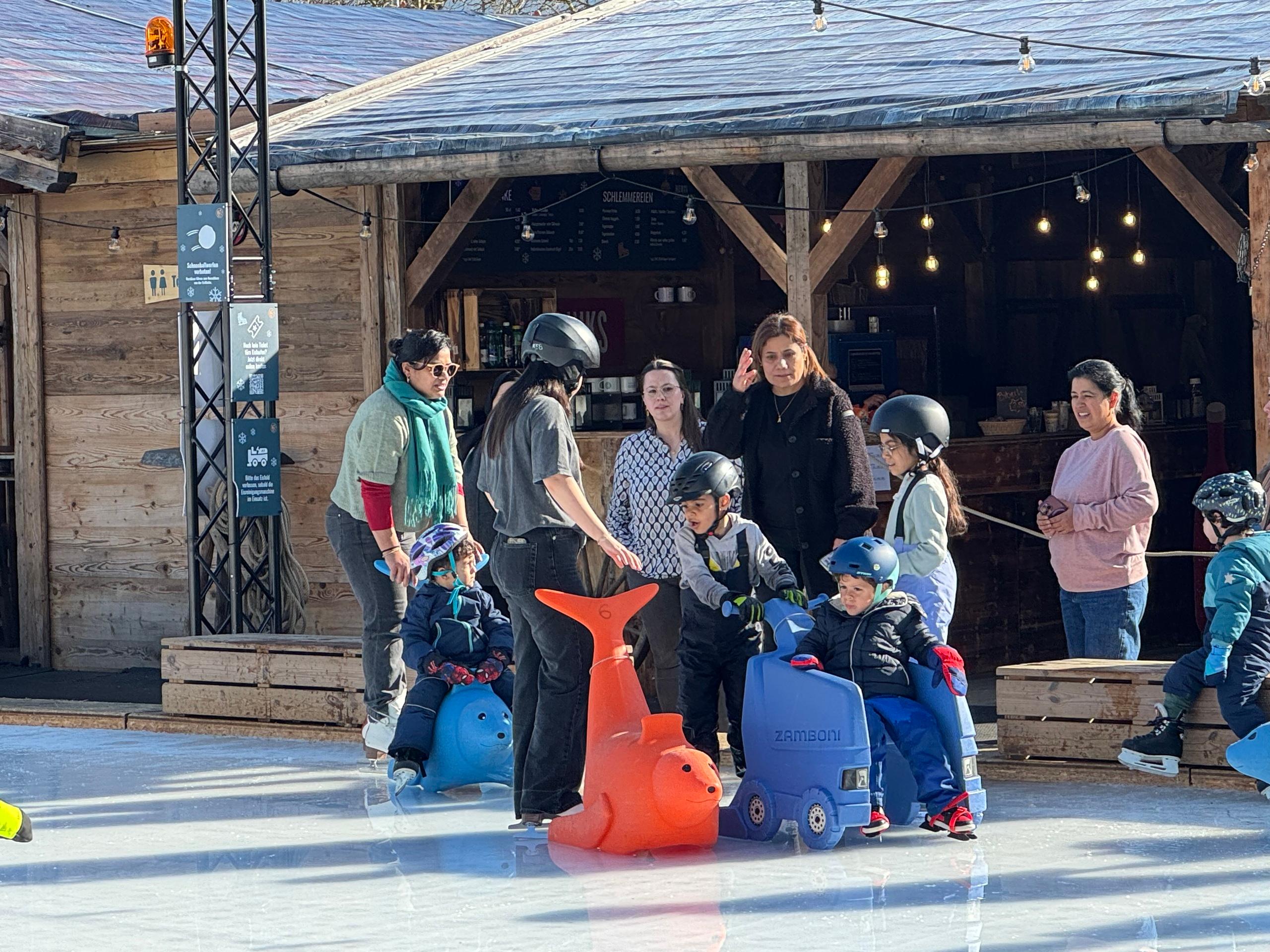 During the last week of “Herti Zauber” at the end of February, the ice rink once again became a lively meeting place: children, families and adults came together, did some springtime laps on the ice or tried their hand at skating and enjoyed a get-together while roasting snake bread.