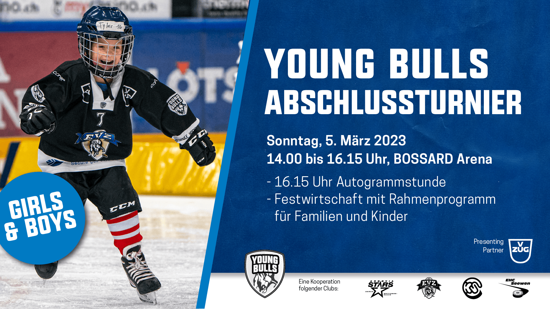 Am Sonntag, 5. März findet in der BOSSARD Arena das Abschlussturnier der Hockeyschule Young Bulls statt.