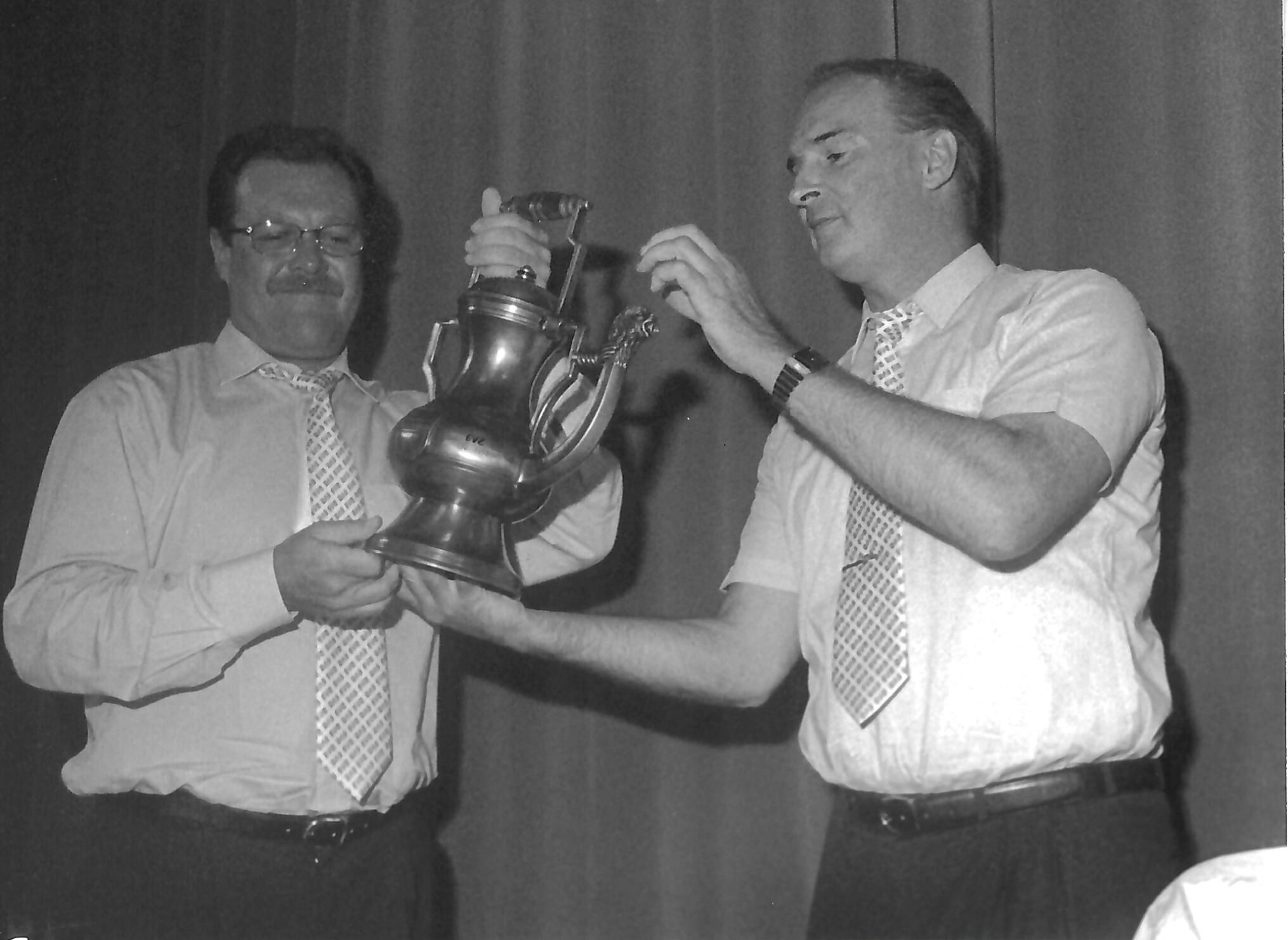 Im Bild: Links Marcel Comte, rechts Willy Köppel, damals TK-Chef.