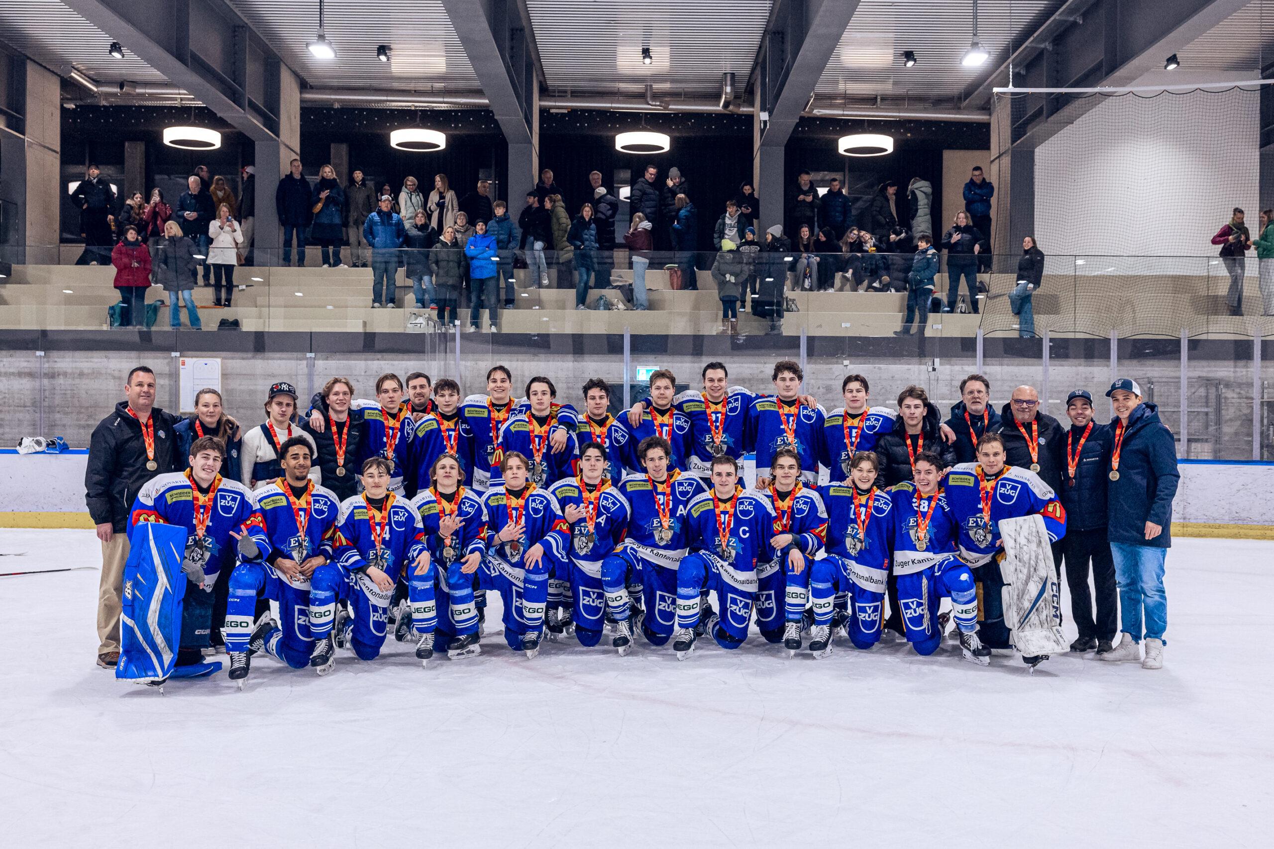 Die ältesten Zuger Junioren haben die Saison mit einem Medaillengewinn beendet. Sie bezwangen den HC Davos im Spiel um Platz 3 mit 5:0 im OYM. Goalie Santo Simmchen feierte einen Shutout, die Tore erzielten Gian Körner (2), Luc Bachmann, Nic Balestra und Ludvig Johnson. Auffällig: Die ersten zwei Treffer fielen in Überzahl – das Powerplay war zuvor nicht die Paradedisziplin der Zuger gewesen. «Wir wollten uns mit einer sauberen Leistung verabschieden, das ist uns gelungen. Die Jungs haben ein gutes Spiel gezeigt», freut sich EVZ Head Coach Thomi Derungs.