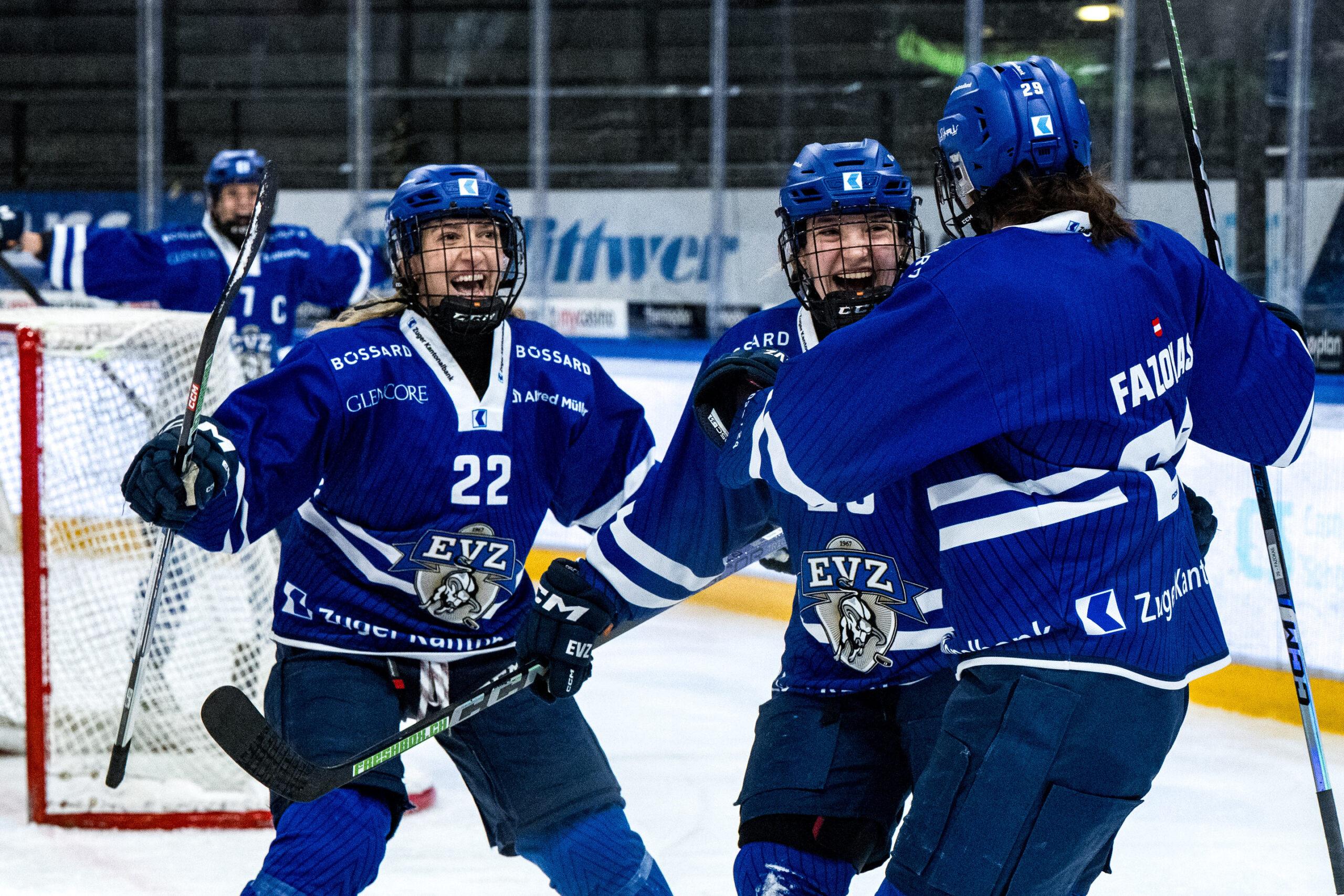 Drei Erfolge trennen das EVZ Women’s Team vom Meistertitel der SWHL B. Am Samstag steht in der BOSSARD Arena das erste Finalspiel gegen die EHC Bassersdorf Ladies auf dem Programm (Spielbeginn um 19 Uhr). Tags darauf geht die Best-of-5-Serie um 18.45 Uhr in Kloten weiter. Sollten die Zugerinnen – nach Viertel- und Halbfinal – auch diese Serie schnellstmöglich gewinnen, würden sie am 13. März zu Hause den Meistertitel bejubeln können (Spielbeginn um 19.45 Uhr).